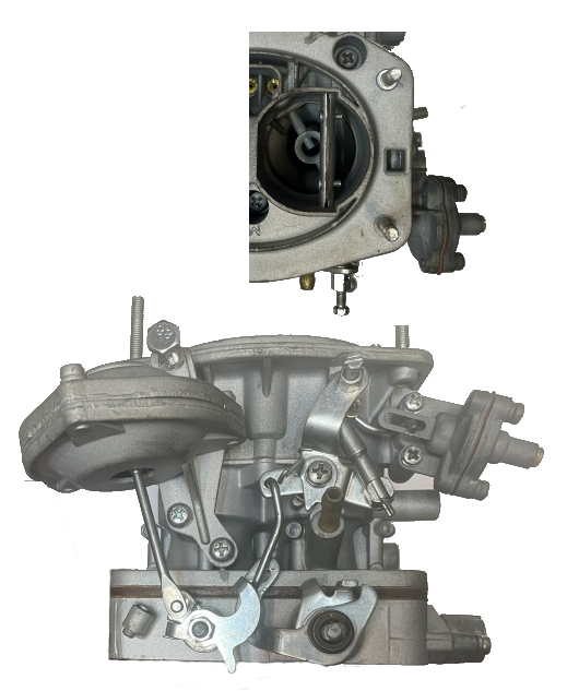 В исходном положении воздушная заслонка стоит вертикально. Для запуска двигателя тросик поворачивает рычаг 3 против часовой стрелки, тяга 7 перемещается вверх. Заслонка поворачивается очень легко и полность закрывается, тяга 7 не сжимается. Когда двигатель заводится, появляется разряжение, диафрагменный механизм перемещает тягу 8 вправо и она приоткрывает воздушную заслонку на некоторый угол. Для того, чтобы тяга 7 не мешала открытию воздушной заслонки, она сделана телескопической и легко сжимается.